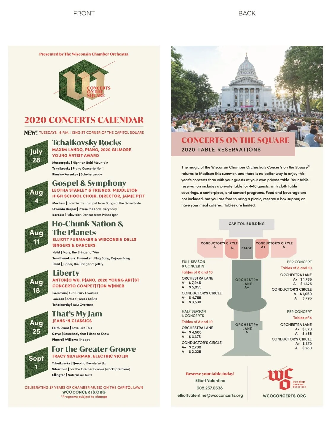 Concerts on the Square 2020 Calendar + Table Reservations Handout